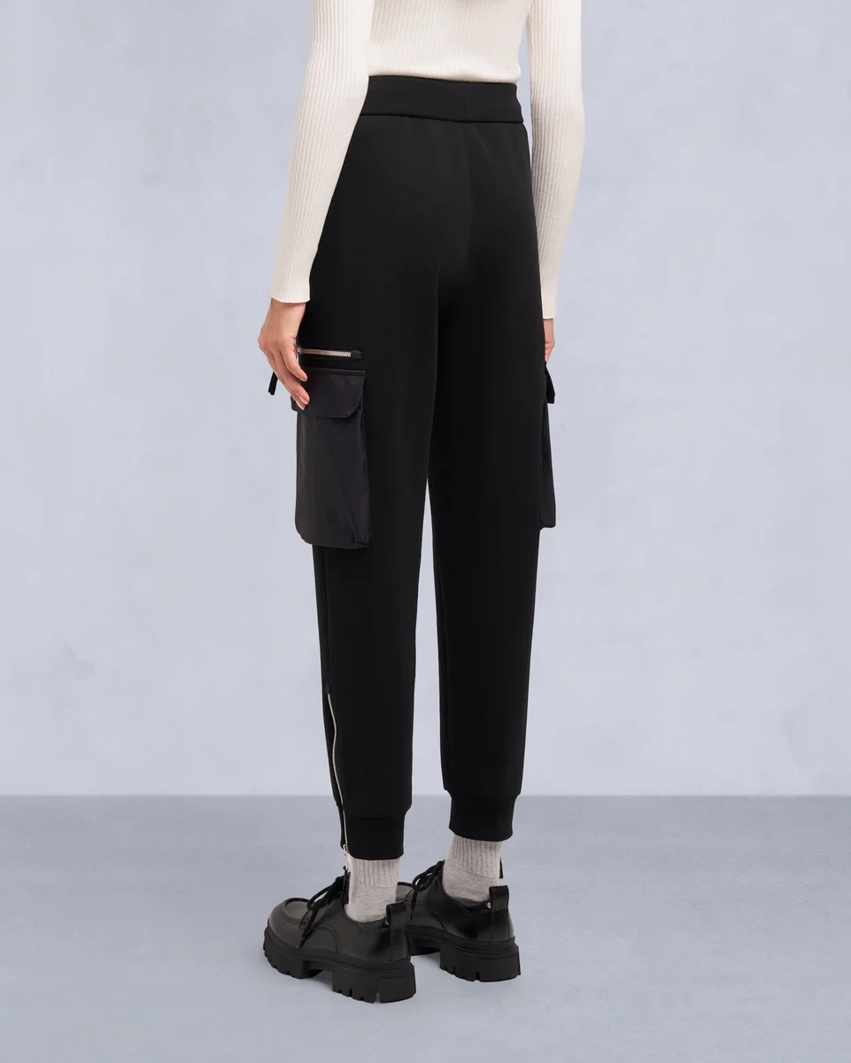 - Geribde tailleband met trekkoord aan de binnenkant, geribde manchetten en ritssluiting aan de broekspijpen