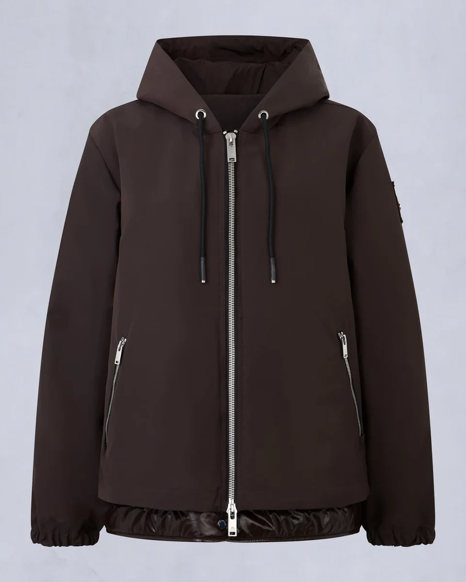 - Buitenkant: vastzittende capuchon. Voering: verstelbare capuchon.