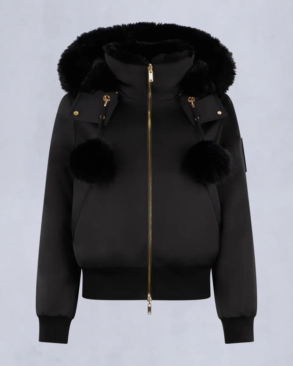 - Afneembare capuchon met imitatiebontrand en afneembare imitatiebontpompons.