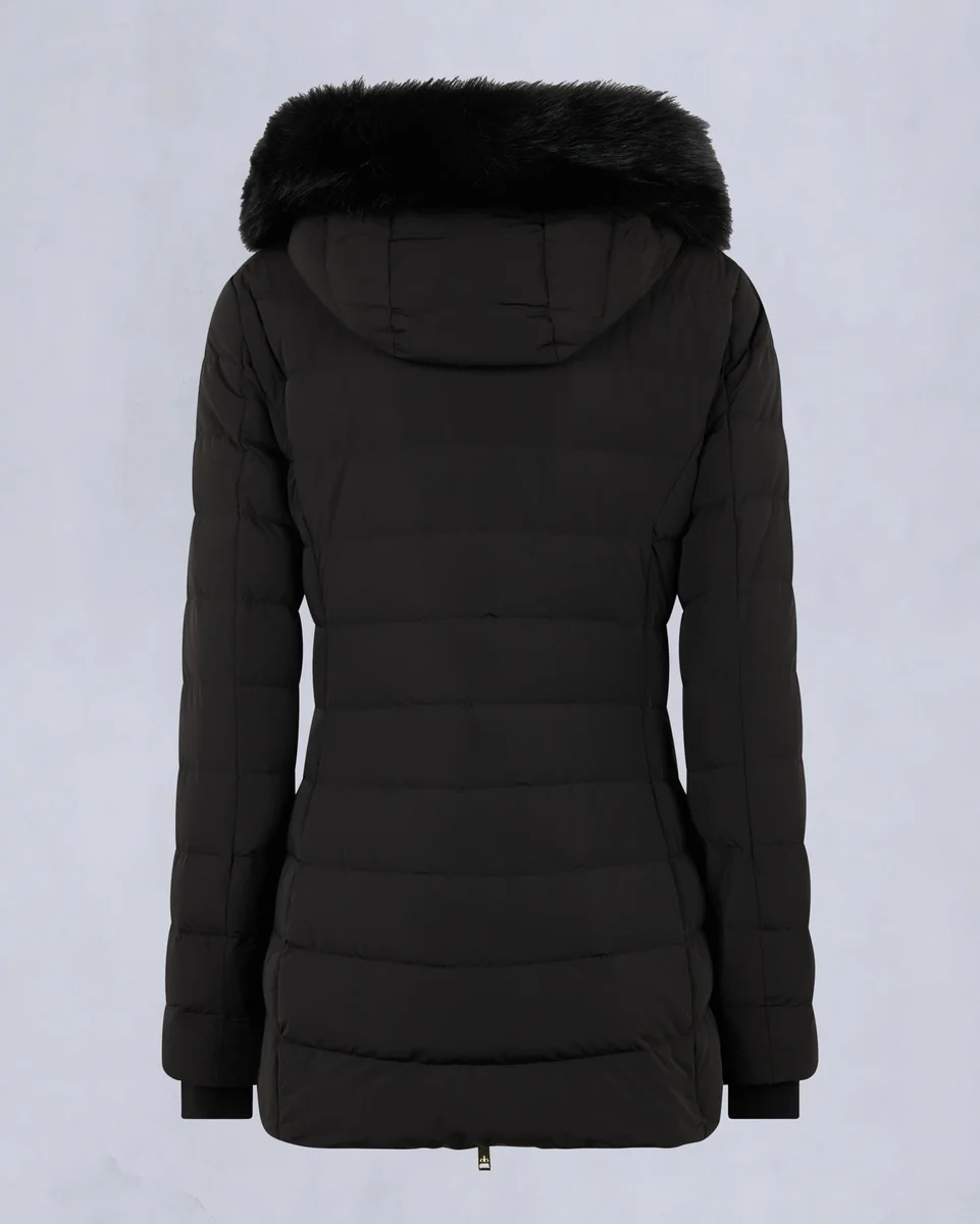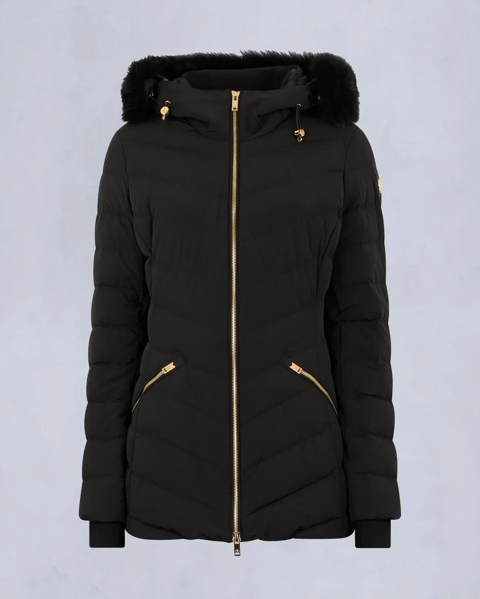 Blijf warm en stijlvol tot -10 °C (14 °F). Deze stadsklare jas uit de Gold-serie heeft een verstelbare capuchon met afneembare schapenvachtrand, een 2-wegritssluiting, ritszakken