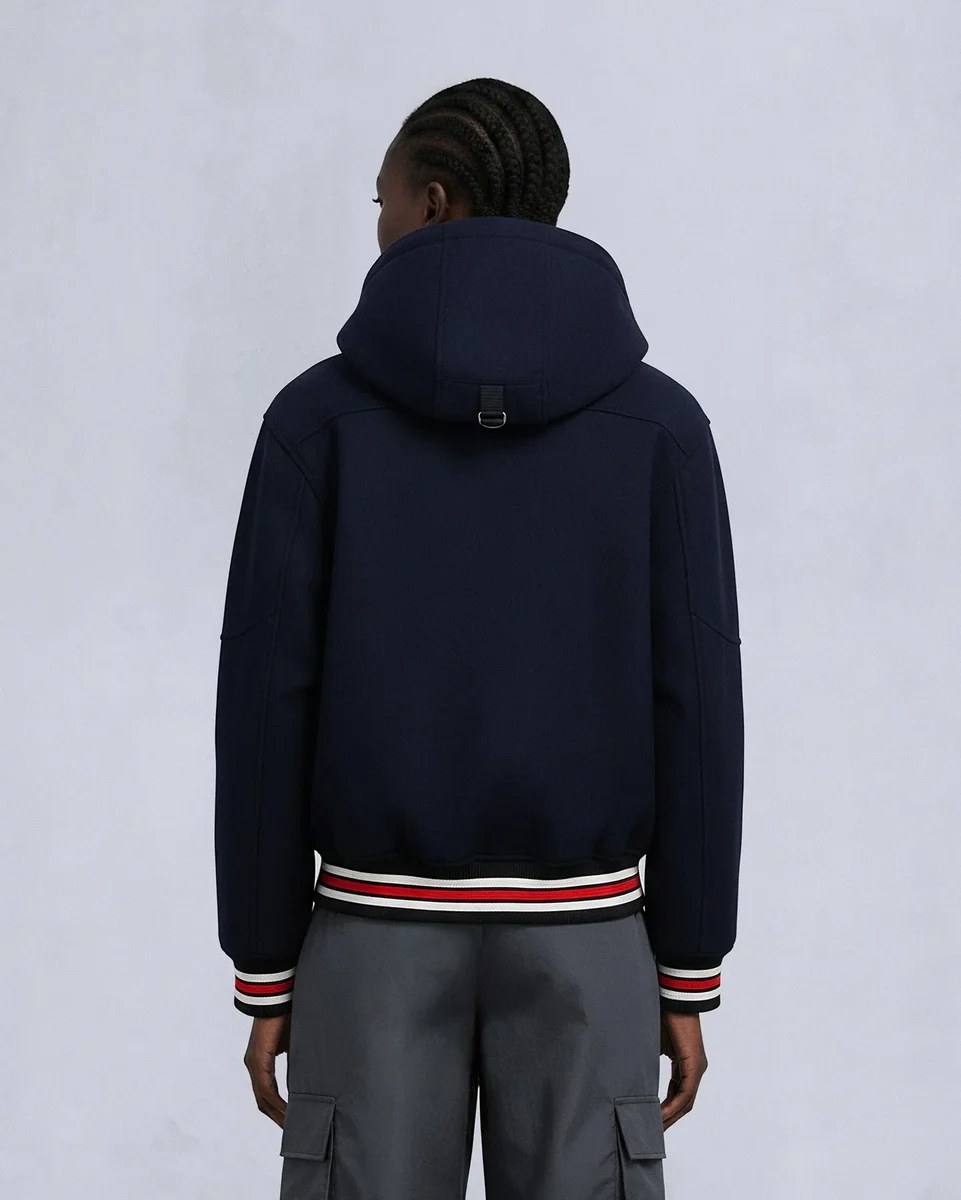 - Afneembare capuchon met afneembare schapenvachtrand en pompons