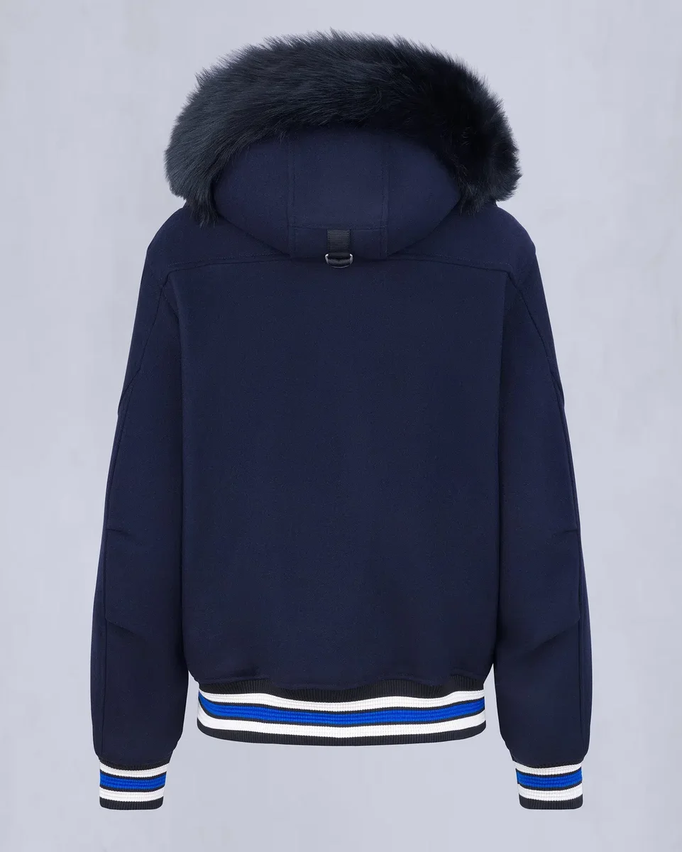 - Afneembare capuchon met afneembare schapenvachtrand en pompons