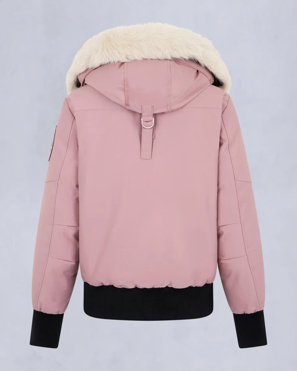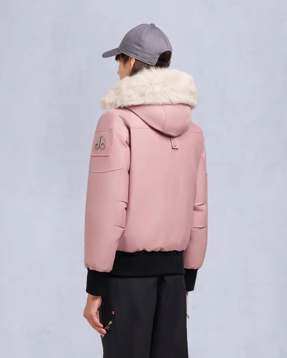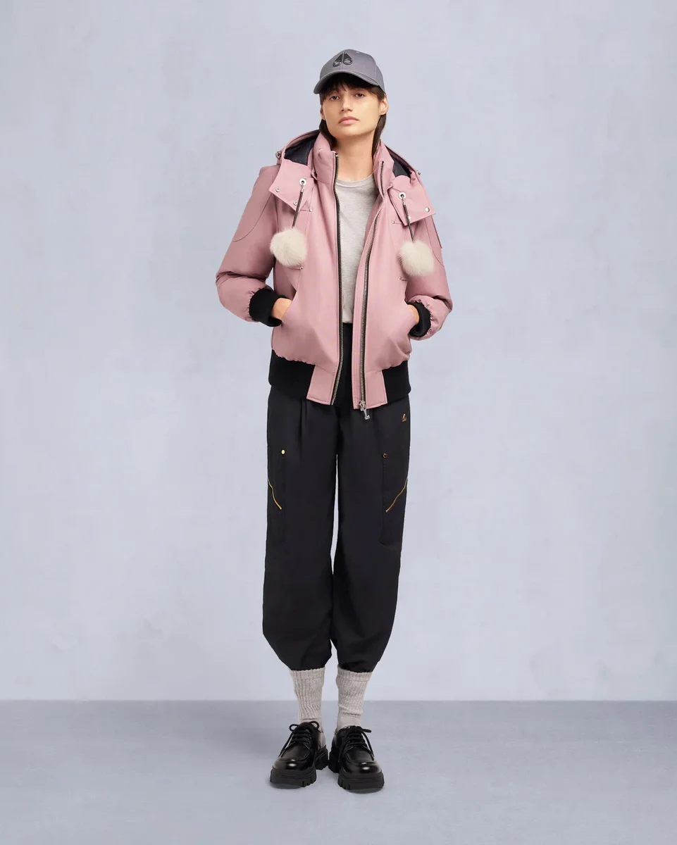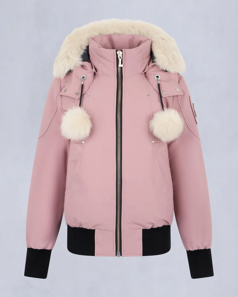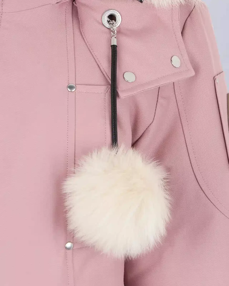 - Afneembare capuchon met afneembare schapenvachtrand en pompons