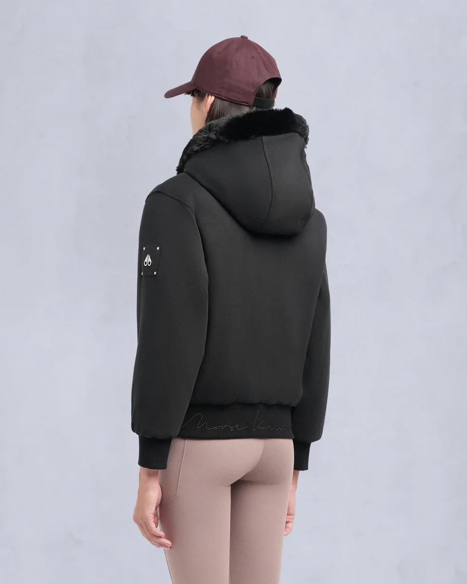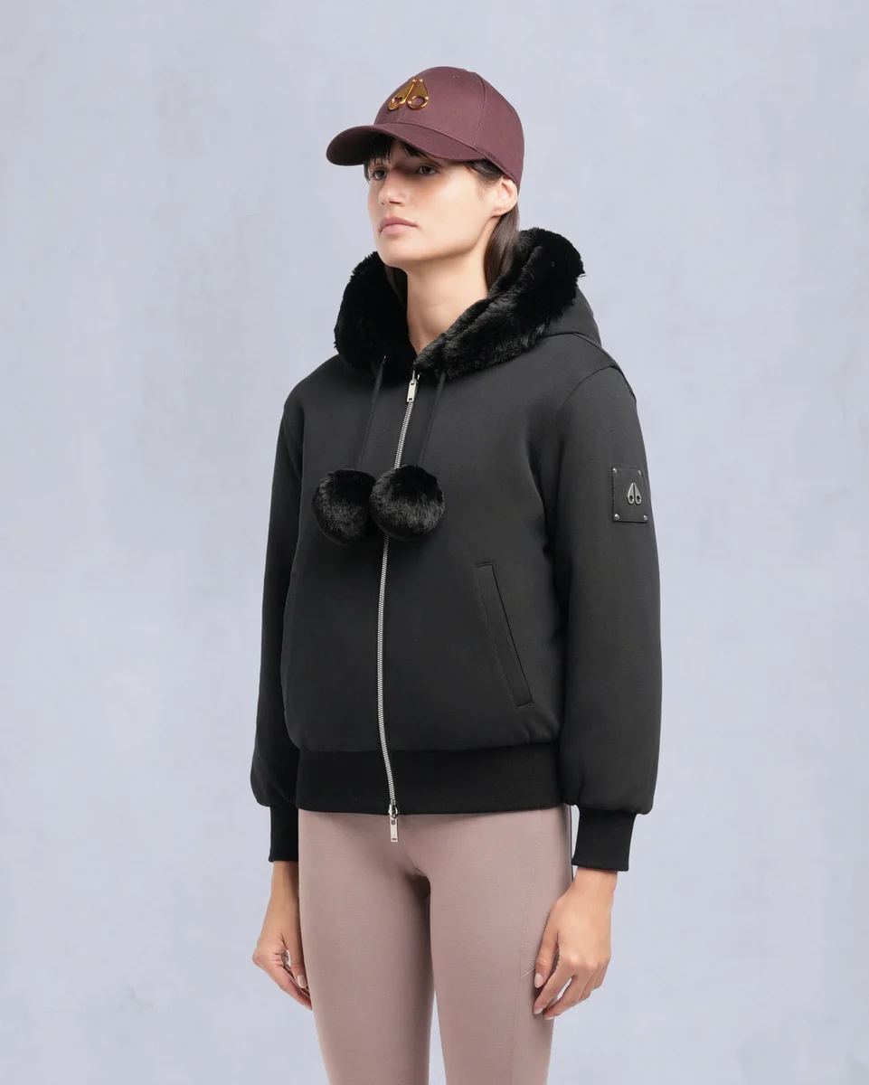 - Zijkant B: Moose Knuckles-logo op zoom