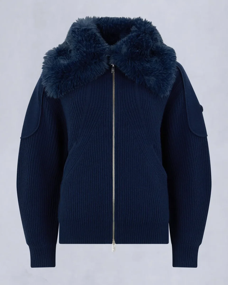 - Geribbelde kraag met afneembaar imitatiebont