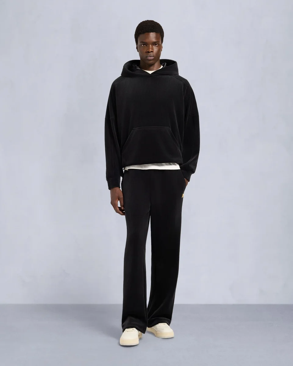 De Preston-broek, gemaakt van luxueus corduroy velours, biedt grenzeloos comfort. Combineer hem met de bijpassende hoodie voor een complete loungelook.