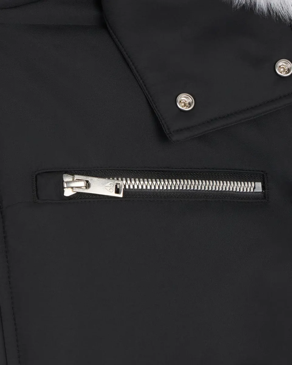 Verwijder afneembare versieringen voordat u het kledingstuk reinigt. Binnenstebuiten chemisch reinigen – mild proces. Strijken op maximale temperatuur 110 °C – zonder stoom.