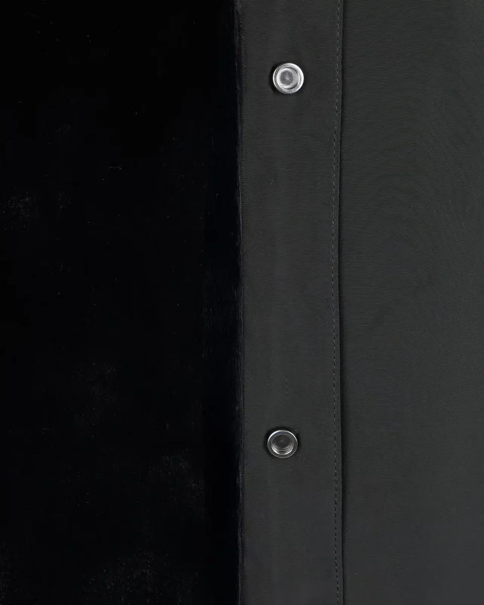 Verwijder de afneembare randen voordat u het kledingstuk reinigt. Binnenstebuiten chemisch reinigen – mild proces. Strijken op maximale temperatuur 110 °C – zonder stoom.