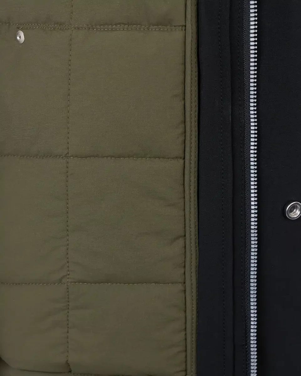 - Buitenkant: vastzittende capuchon. Voering: verstelbare capuchon.