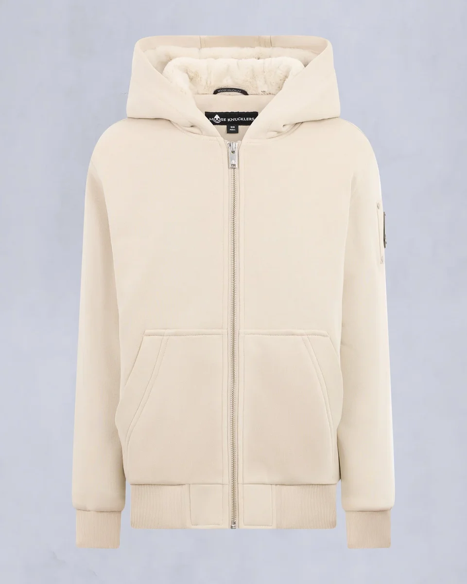 De Classic Bunny is een hoodie met volledige ritssluiting, gemaakt van een mix van katoen en polyester, met een capuchon van imitatiebont die het klassieke silhouet versterkt.